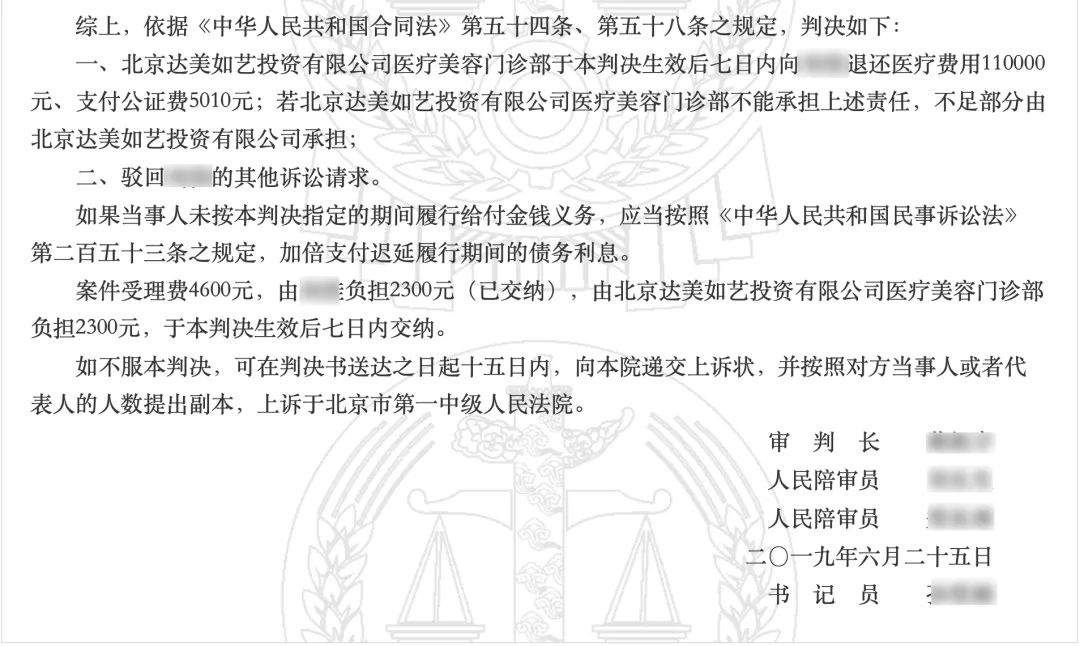 最终,法院判决达美如艺公司按 90% 的比例,对孟琳承担赔偿责任。她获赔 4 万余元。代理此案件的律师马长旺告诉「偶尔治愈」,经手案件时,他看过孟琳的伤情照片。「满脸都是色素沉着,有很多黑色印记。很严重,可以说是『毁容』了。」