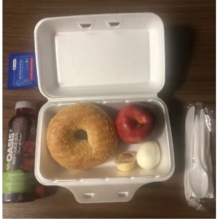 虽然每天都会有人负责将餐食送到房门口,但是来来去去就是那几样:每天4瓶水,像苹果一样硬的Bagel,粗糙的火腿三明治…