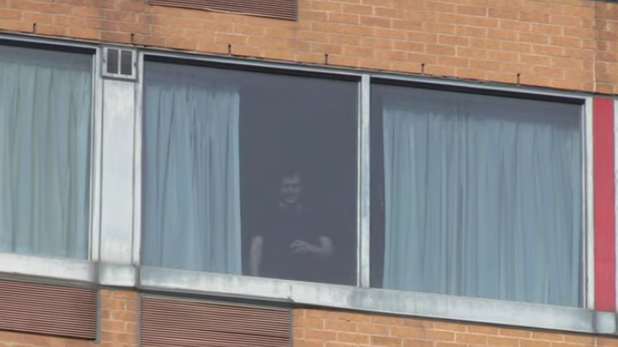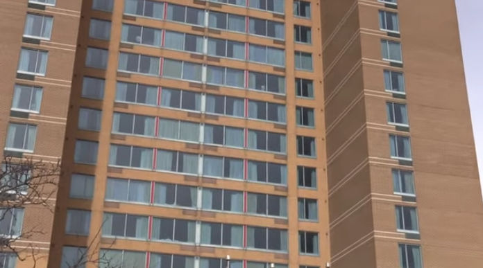住在9楼的Duesing只能每天透过窗户看看楼下的Tim Hortons,Harvey’s解解馋…