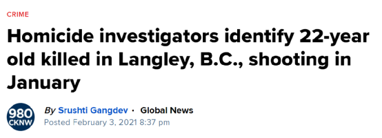 1月26日上午,兰里(Langley)年仅22岁的男子Arshdeep Singh被人开枪打死,警方称是针对性作案。
