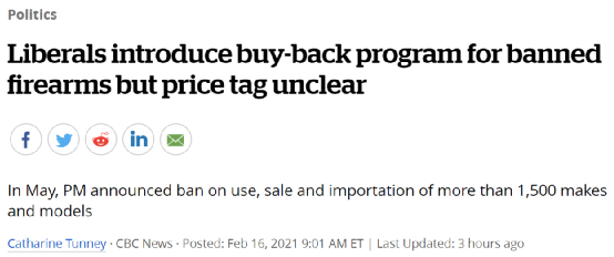 【加拿大乐活网lahoo.ca 程序综述】2月16日,联邦政府制定了一项新的C-21枪支管控法案,并授权允许加拿大各市级单位全面禁用手枪。