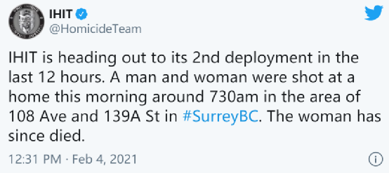 在大温哥华地区的所有市级单位中,除了温哥华市以外,还没有哪个市有这么快的反应,可枪击案却不止发生在大温