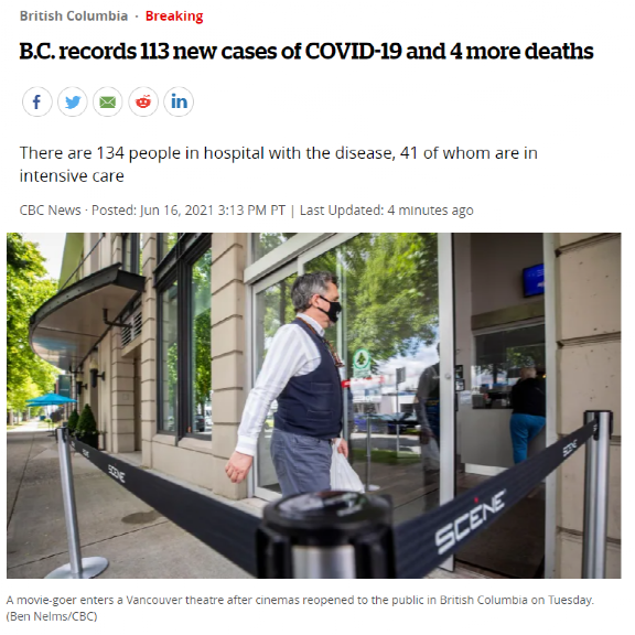 BC省首席卫生官Bonnie Henry博士6月16日在声明中表示,本省在过去24小时内新增新冠感染病例113例,另有4人死亡。新增病例数相比前几日都有一定程度的上涨,特别是有14日仅新增68例的“珠玉”在前,进入解封第二阶段第二天的数据着实有些让人担忧。