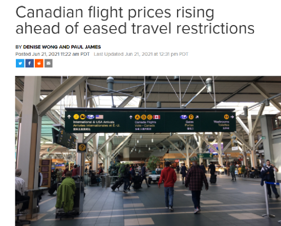 一家公司票务中心负责人艾莉森华莱士对CITY NEWS记者说,过去几周加拿大的机票价格一直在上涨。她说,联邦政府宣布放宽对完全接种疫苗的旅行者的检疫要求的公告,将导致价格进一步走高。