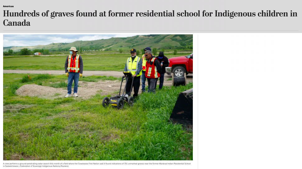期间关于这数百具尸体,一直没有什么消息动静。直到今年六月上旬,Cowessess使用探地雷达,定位出了没有标记的坟墓。目前也正在调查这些遗骸是不是都跟寄宿学校有关。