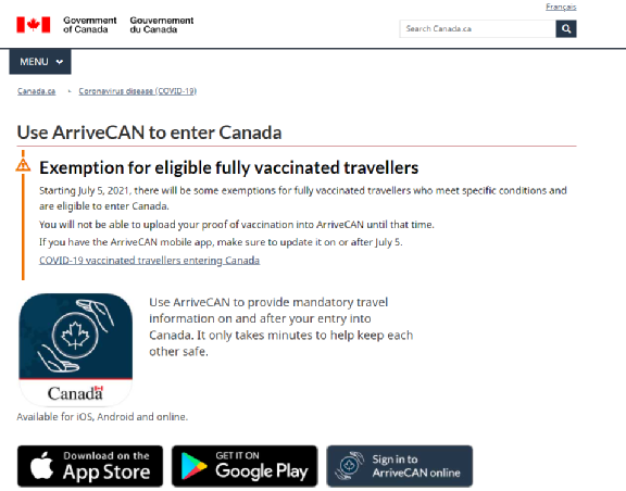 CBSA表示,不管是经空路还是陆路入境,旅客必须在抵达加拿大边境前,使用ArriveCAN手机软件或用电脑登录相关网页,上传他们的新冠疫苗接种情况以及新冠阴性检测结果。