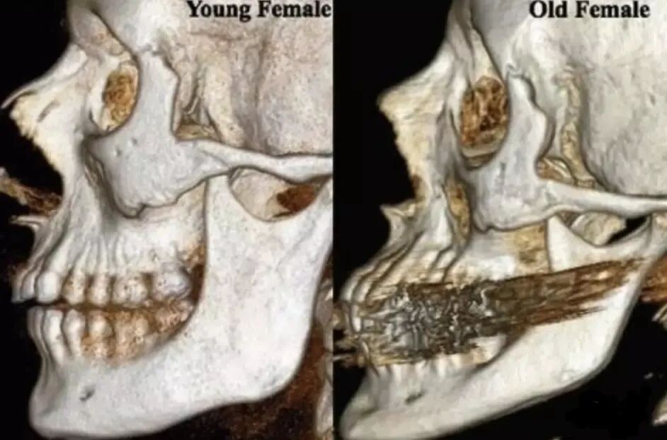 最可怕的是,老化是包含骨骼的。美国罗切斯特大学医学中心发现人类在衰老过程中,颧骨和鼻骨开口处向后萎缩,下颌骨长度和高度也会萎缩,下半张脸失去支撑造成脸垮。