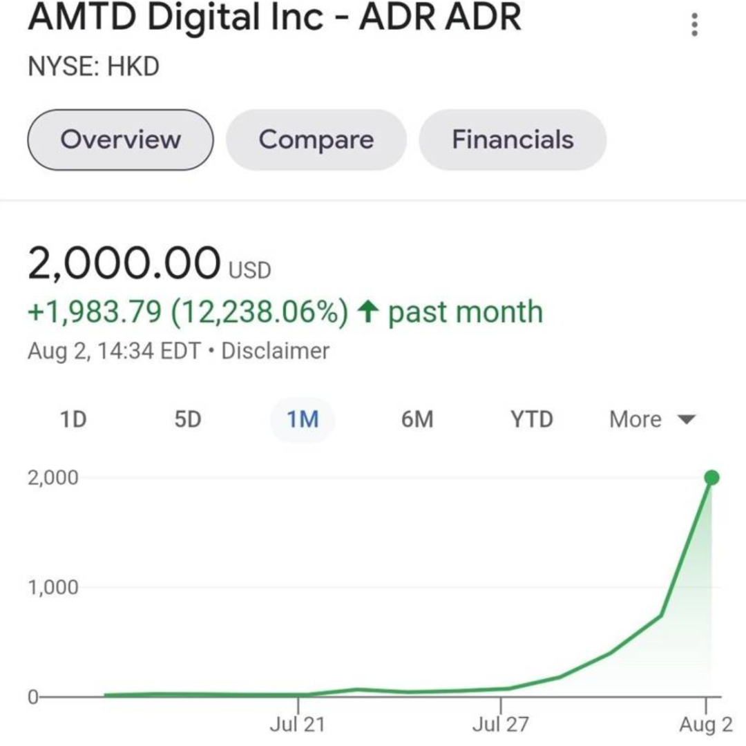 当地时间8月2日,在美上市中概股尚乘数科股价单日飙升近130%,收盘报每股1679美元,市值3107亿美元,约合人民币2.02万亿!