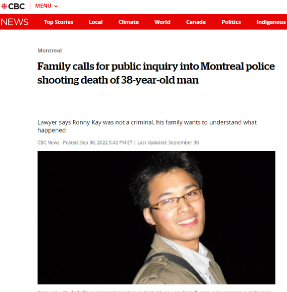 加拿大乐活网lahoo.ca记者三三: 警察执法致使平民伤亡的悲剧这一次发生在了华人头上。9月17日,加拿大华人男子,38岁的祁卓恒(Ronny Kay)在街上“疑似持枪”行走后,被警方直接击毙。目前,他的亲友正在为其奔走,呼吁对其死因进行公开调查,还祁卓恒一个真相。