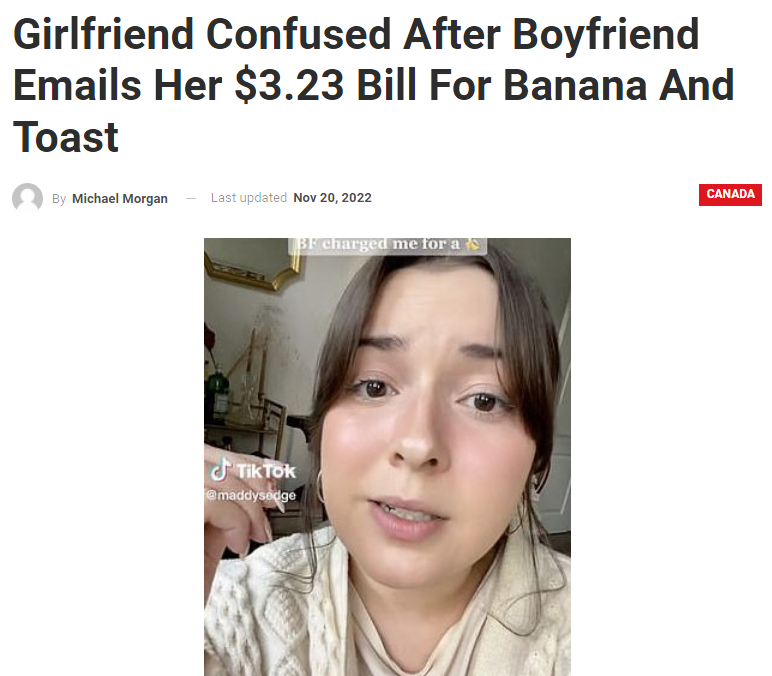 加拿大妹子去男友妈妈家吃了个香蕉和吐司!竟收到$3.23账单!网友炸锅:原地分手