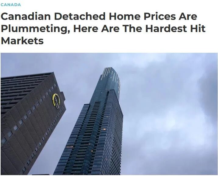 跌幅最大的则是在安省。目前全加拿大,没有一个城市(社区)能幸免。