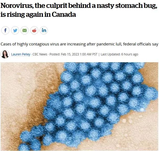 传染性极强的病毒悄悄重出江湖了:诺如病毒(Norovirus)。除了安省外,BC省、阿省、萨省、曼省、新不伦瑞克省和纽芬兰与拉布拉多省也沦陷了。