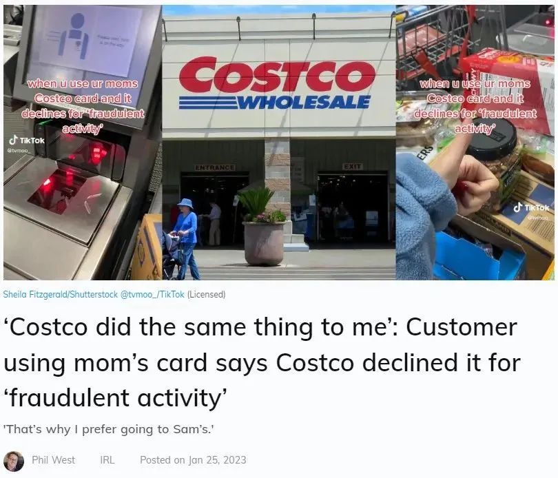 很多网友称自己也有类似的经历。有人说,“Costco对我做了同样的事情。我用了我妈妈的卡,他们拒绝了,他们对此非常严格。这就是为什么我更喜欢去 Sam’s。”