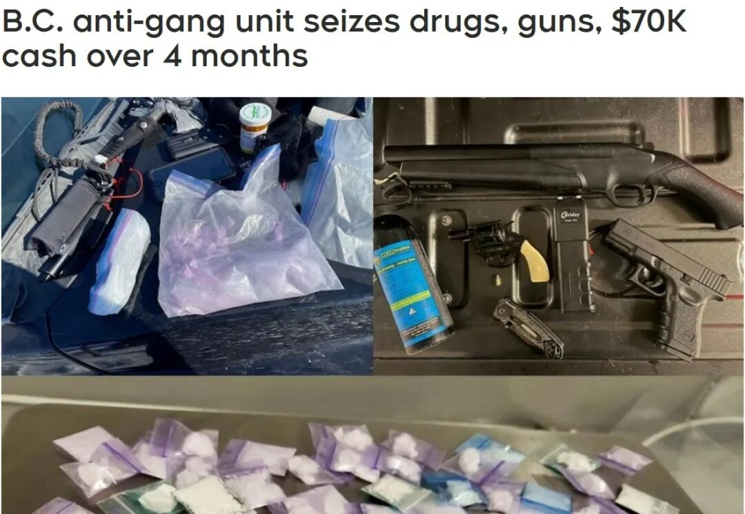 据CTV报道,CFSEU-BC昨天(5月2日)表示,该部门与温哥华、维多利亚、那乃磨、兰里、本拿比、高贵林、坎贝尔河和乔治太子镇的警方合作,于今年三个月进行了260 次调查,缴获了大约 7万元(加币,下同)的现金、两公斤非法药物、两辆与正在进行的调查有关的车辆以及大约 8万元的被盗财产。