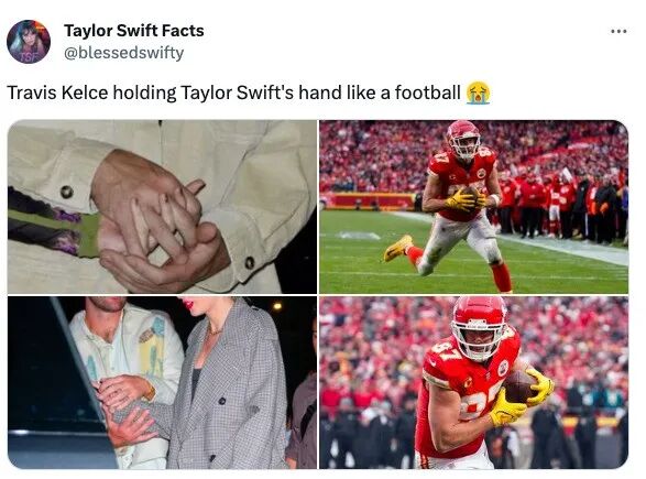 特拉维斯就像抱橄榄球一样握着霉霉的手
